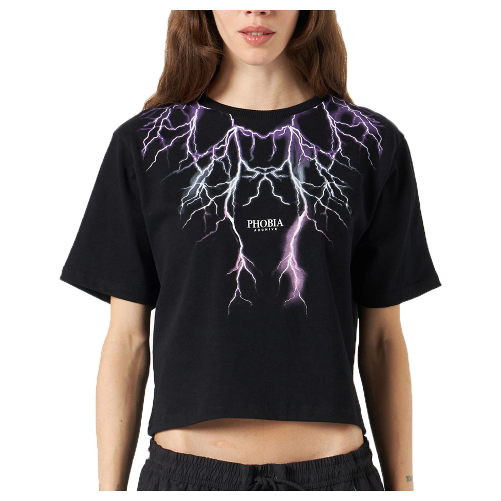 PHOBIA ARCHIVE T SHIRT DONNA CROP BLACK FULMINI FUXIA GREY PINK LIGHTNING Ollie Trick Shop