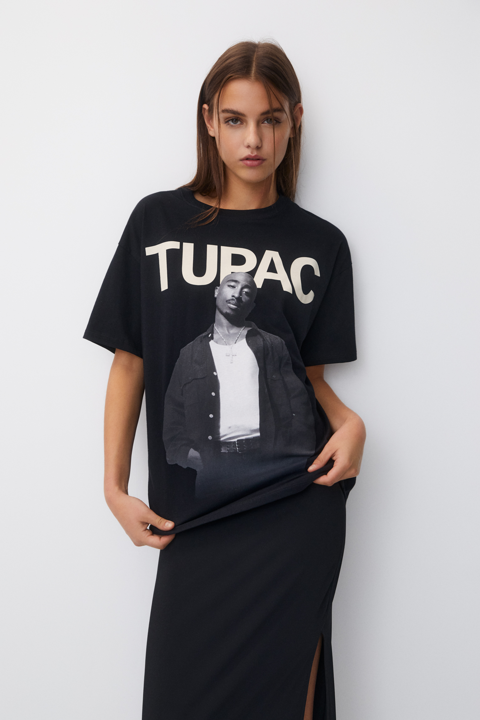 Maglietta nera Tupac stampa grafica PULL&BEAR