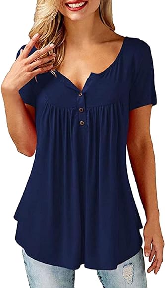 Tuopuda Magliette Donna Estive T Shirt Ruffle Design Camicette Scollo a V Pullover Maglie a Maniche Corte/Manica Lunga Bottone Tops Traspirante …
