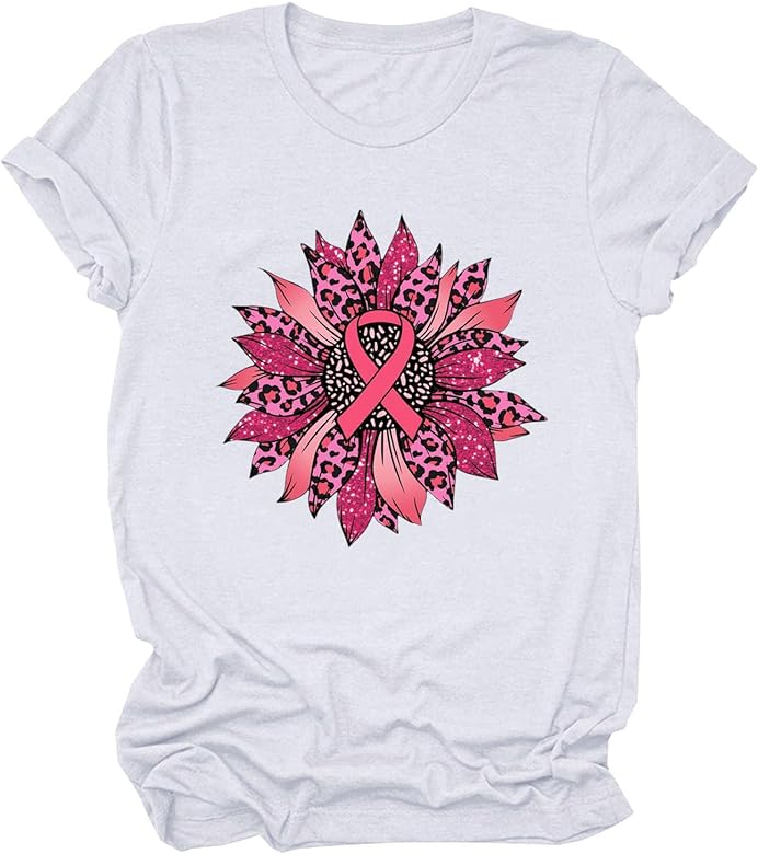 T Shirt Donna Firmate Moda da Donna per Top Casual T Shirt Girocollo Manica Corta T Shirt Stampa Cancro al Seno Top Allentato T Shirt Donna Firmate : …