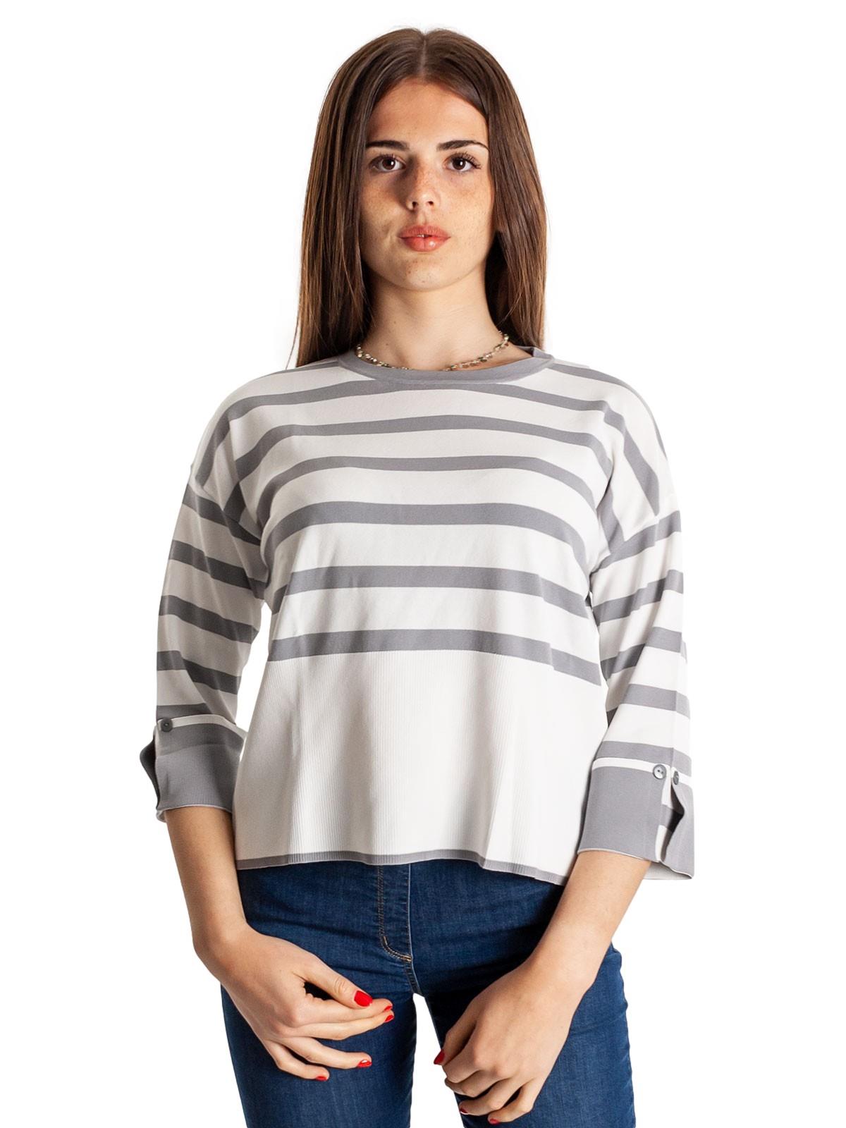 Maglia Donna Estiva A Righe Corta Maniche Tre Quarti Girocollo